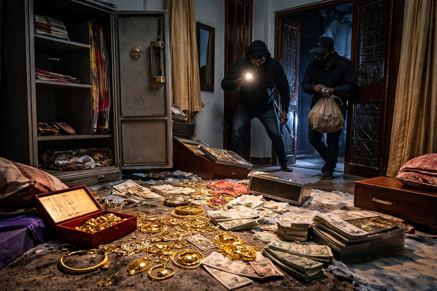 अलमारी तोड़ने की आवाज से पीड़िता की नींद खुली। शुरुआत में उन्हें घर में बिल्ली के घुसने का शक हुआ, लेकिन स्थिति स्पष्ट होने पर उन्होंने दरवाजा खोलने की कोशिश की। इस दौरान चोरों ने अंदर से ही दरवाजा बंद कर दिया, जिससे वे कुछ समय तक कमरे में ही फंसी रहीं।